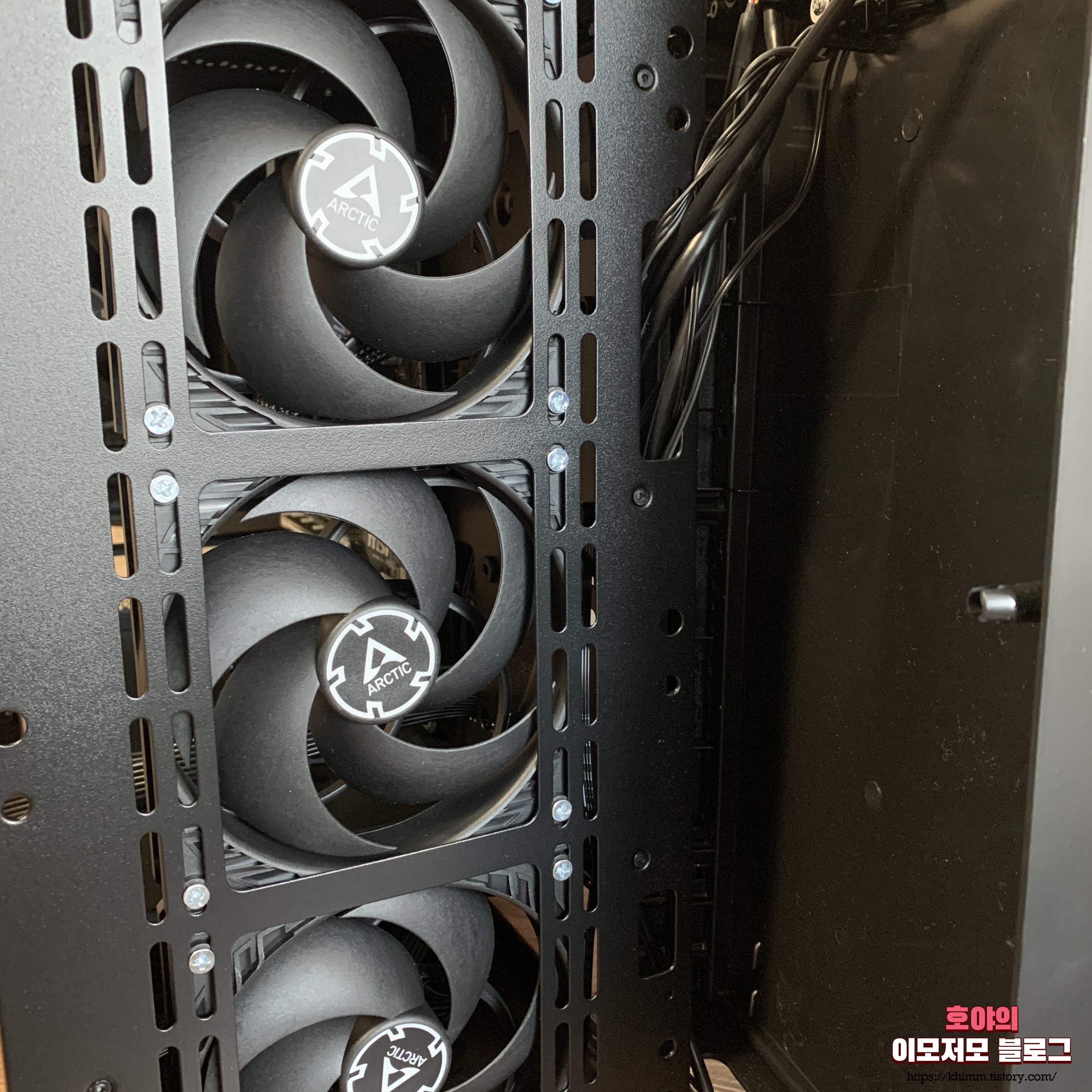 아틱 p12 팬 3개도 전면에 잘 자리했구요.