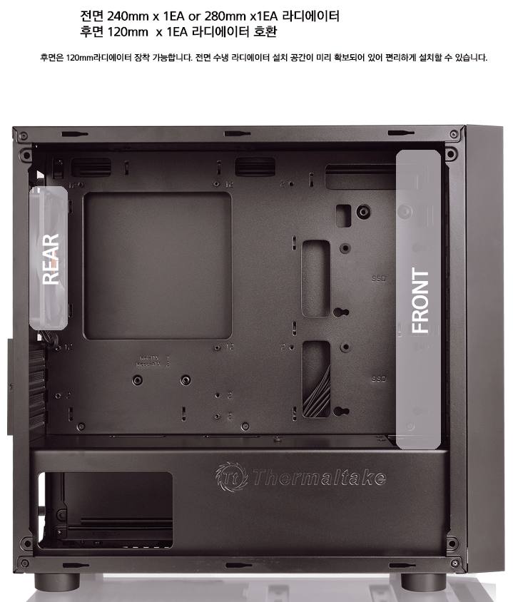 전면에 120mm 3개 혹은 140mm 팬 2개