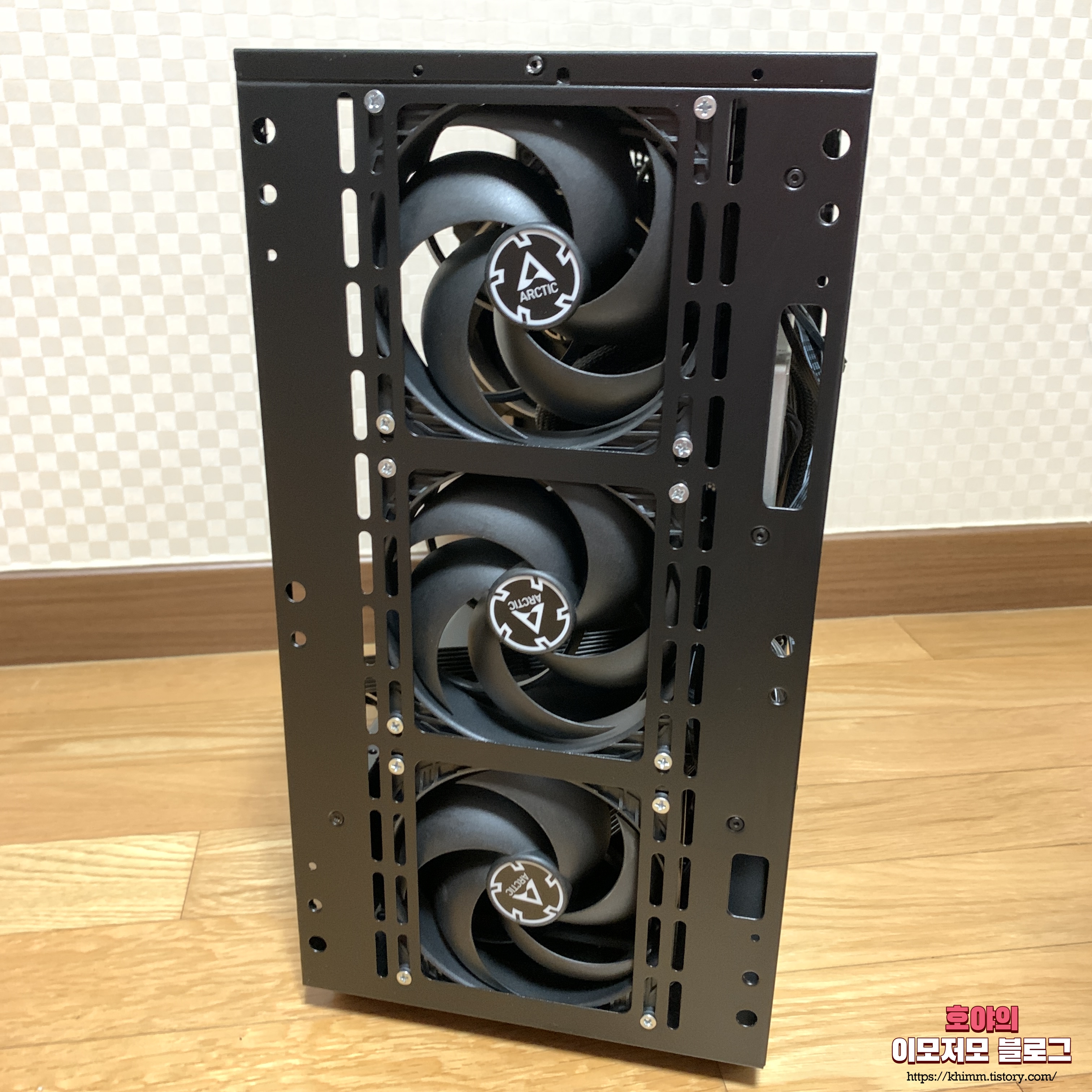 후면에 기본팬 120mm 하나만 사용했었는데요.