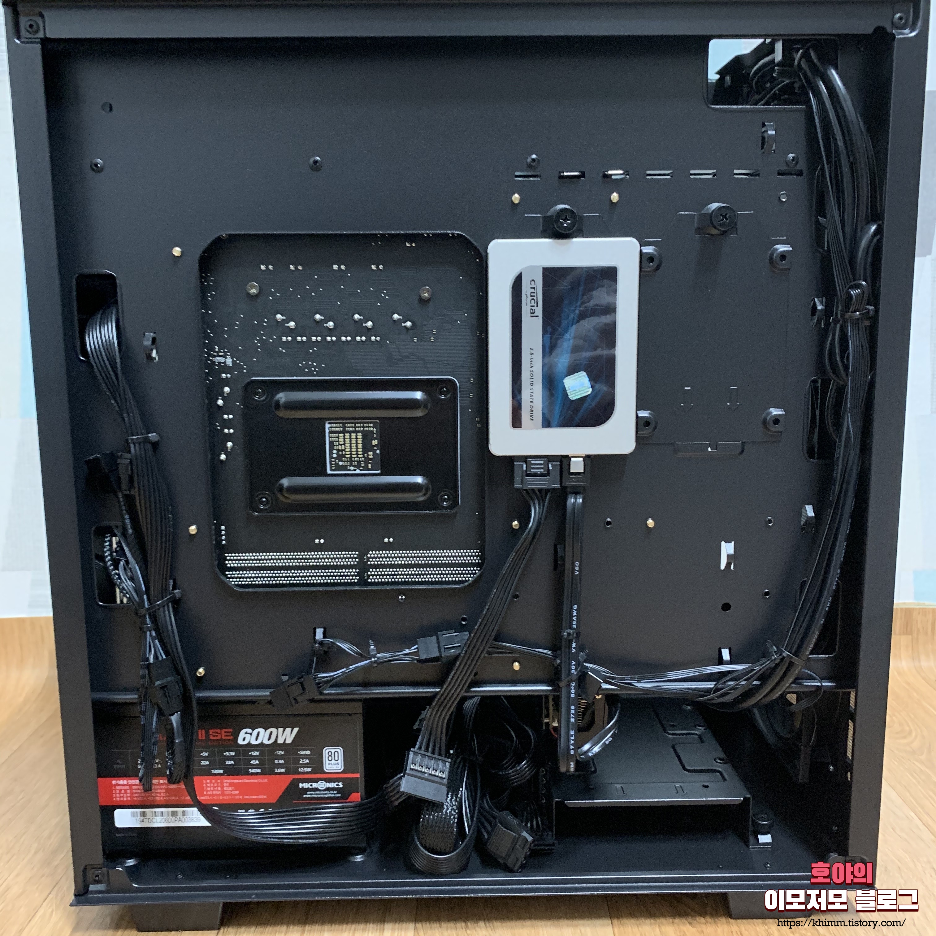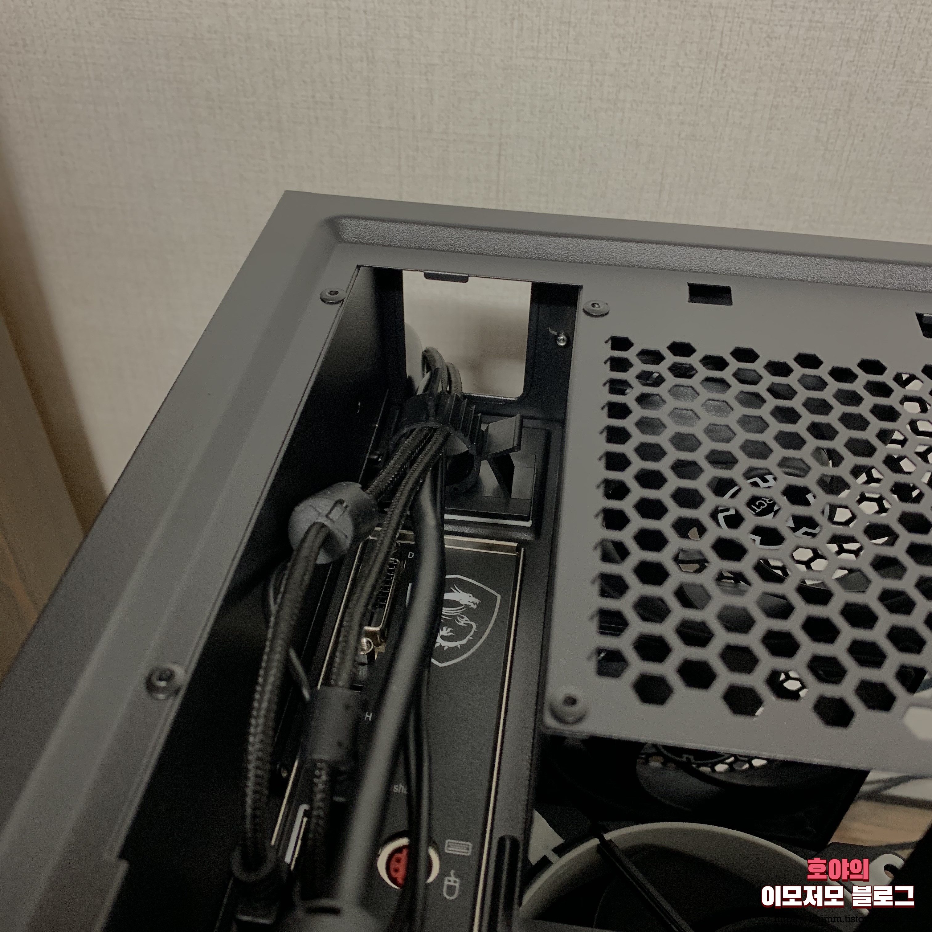 - 하단 파워 서플라이 위에는 커버가 없어서 파워서플라이 선 뭉치들이 보인다는 점