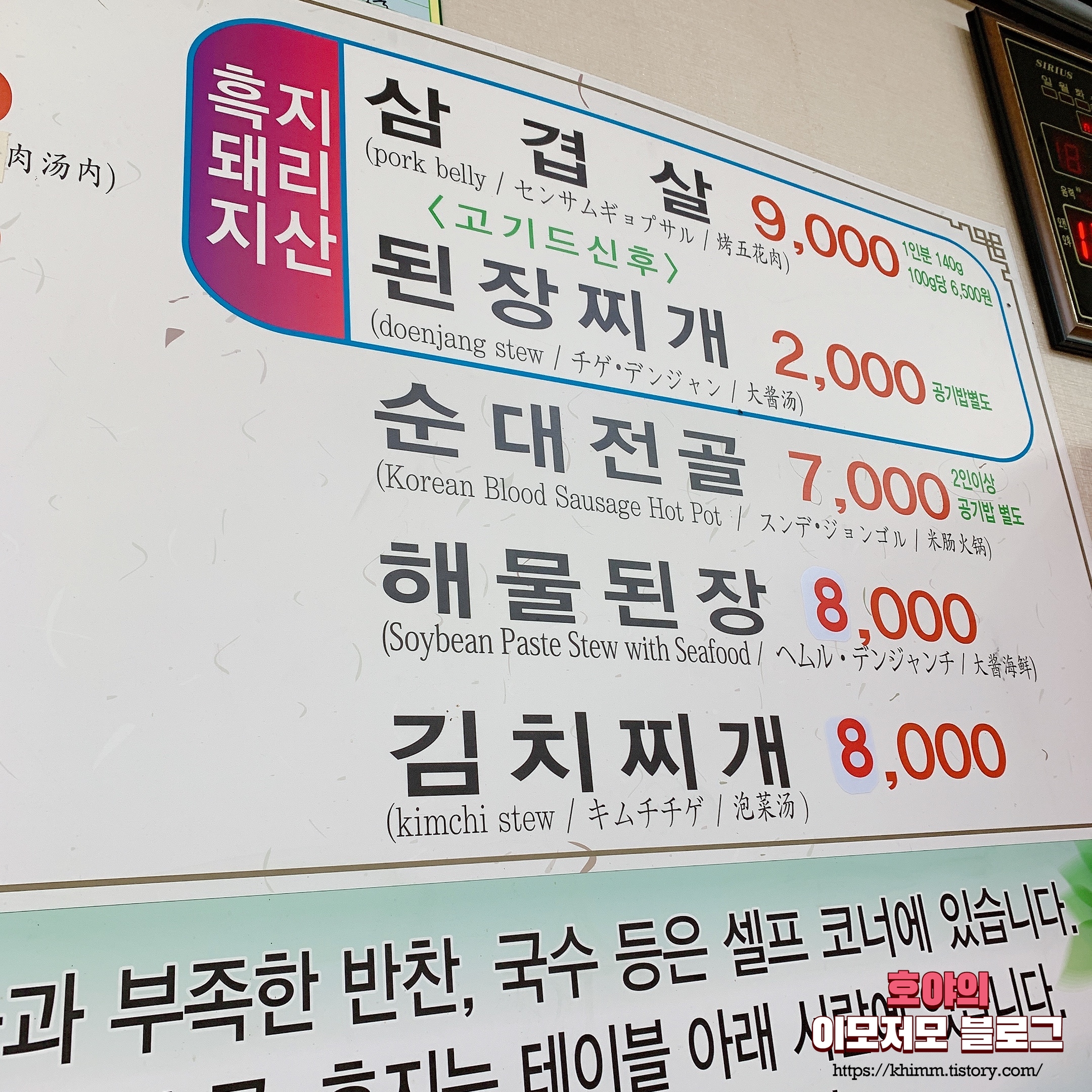 반찬, 국물, 밥 무한리필에 푸짐한 수육,순대까지 나오는데 이 가격이라니요.